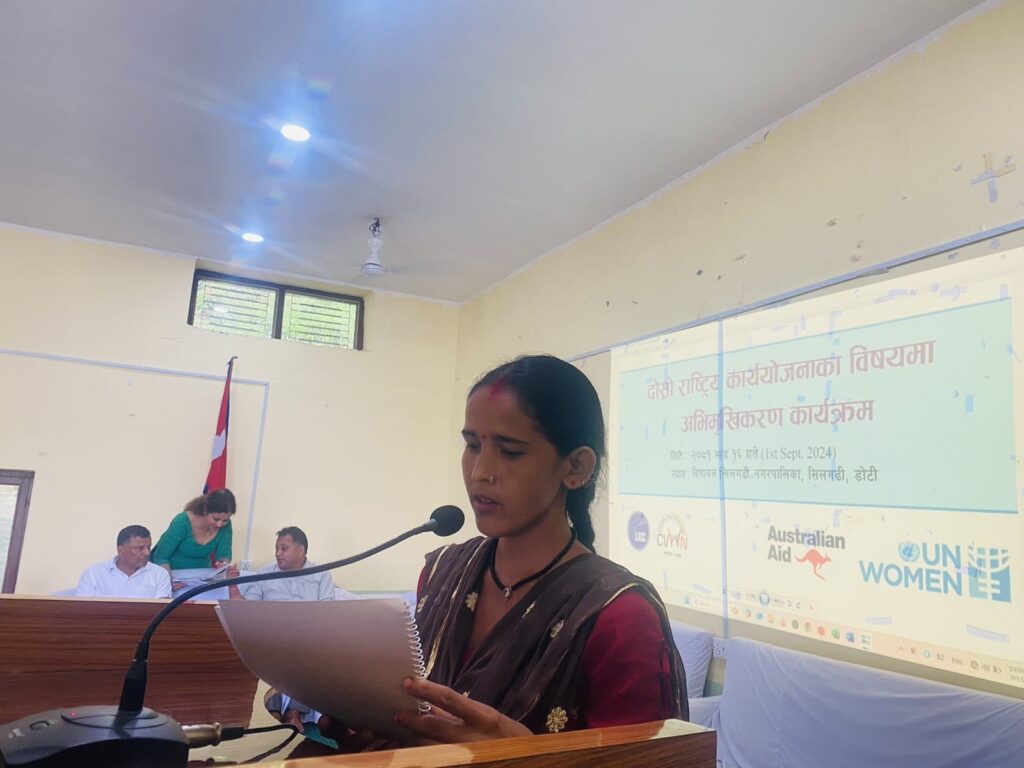 These initiatives enhanced the knowledge and skills of officials and representatives across Madhesh, Karnali, and Sudurpashchim provinces on the Second National Action Plan (NAP II) for the implementation of United Nations Security Council Resolutions (UNSCRs) 1325, 1820, and subsequent resolutions. The dialogues clarified the rights and needs of conflict-related sexual violence (CRSV) survivors, underscored the importance of local-level sub-committees, and highlighted provisions for compensation, services, and the four pillars of NAP II.